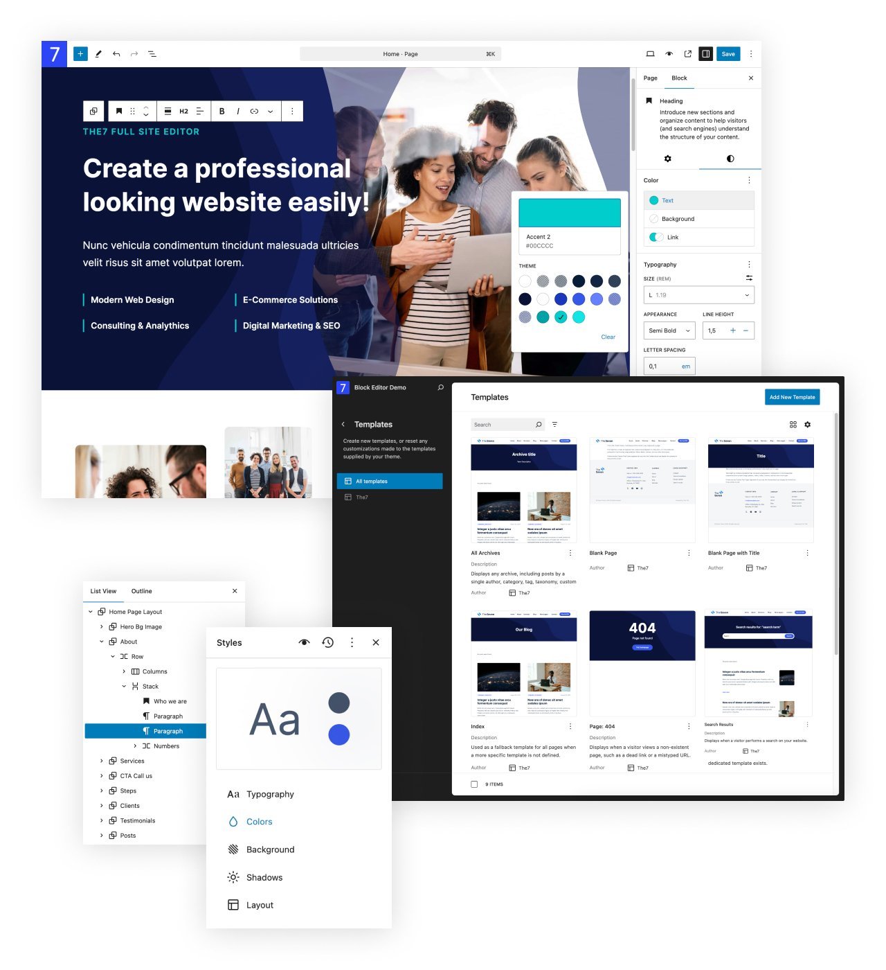 As of version 12, The7 supports WordPress’s native Full Site Editing (FSE). Edit your entire website – including headers, footers, archives, and more – directly within the WordPress interface. Enjoy The7’s signature design without the need for additional plugins or a steep learning curve.