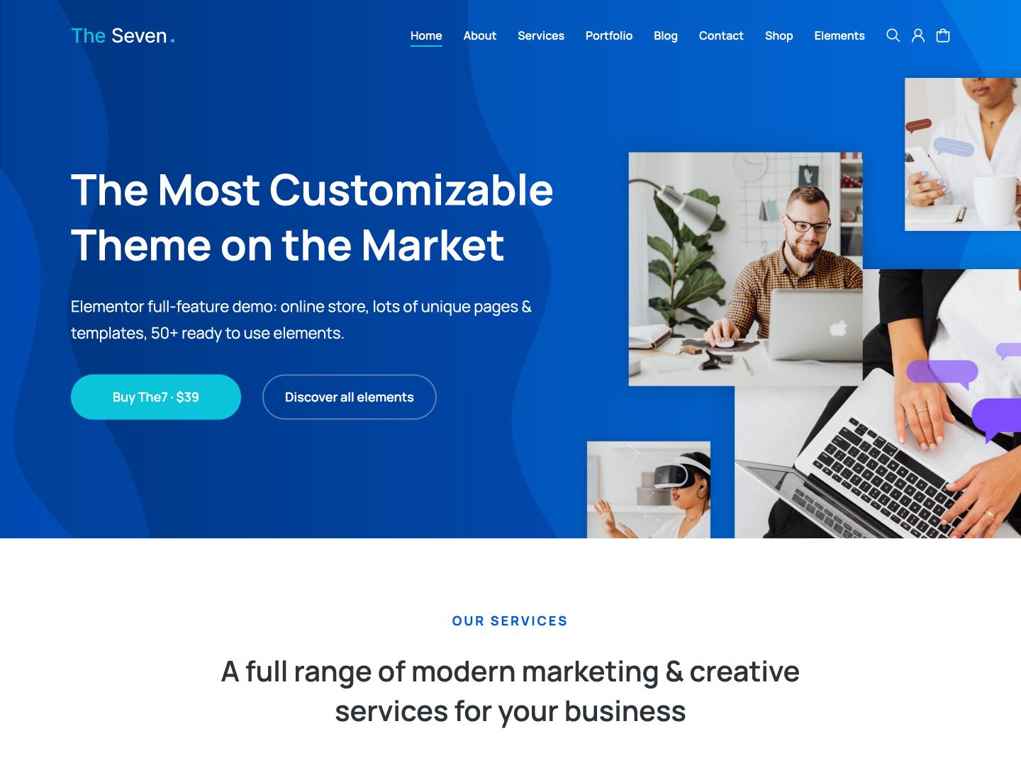 The7 is the ultimate WordPress theme, offering unparalleled versatility, flexibility, and value. Compatible with Elementor, WordPress Block Editor, WPBakery Page Builder, and WooCommerce, The7 empowers you to build any website imaginable – from professional corporate sites and online stores to creative portfolios and simple blogs – no coding skills required!